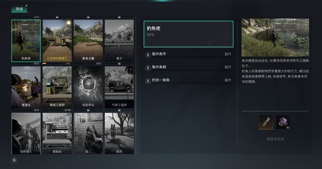 可以從旅途頁面裡面可以窺見一二,除了有常見的釣魚、烹飪、蓋房子以外