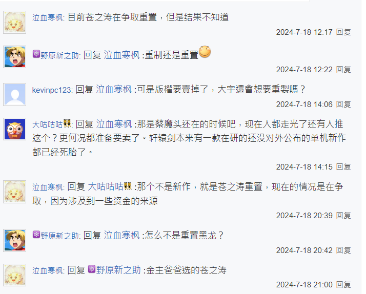 alinwang: 對岸的百度軒轅劍吧,提供消息的和大宇內部人士有管道. 08/05 10:12