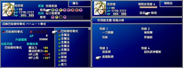 極限等級,改成 極限技等級 選單右下的時間,對齊下一行 選單右下的金幣,改成Gil(FF世界觀通用) https://i.imgur.com/VTEk6tW.jpg