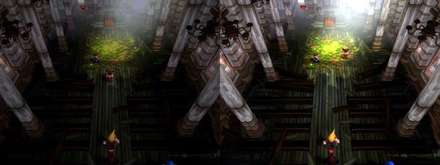<題外話>(關閉 60 fps mod 的狀態) 進入教堂的一瞬間,畫面還很暗的時候,小女孩有約一幀位於正中央,面朝下 再突然瞬移到右上,有約二幀,也是面朝下,然後才恢復正常,面朝左上 雷諾和士兵也有約八幀在最下面,以下畫面是已經調亮 有些人以為在中央一閃而過的就是艾莉絲(因為很暗+沒看到在整理花的艾莉絲) https://i.imgur.com/M2BOug3.jpg