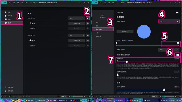 .步驟7的「反感應死區」,請配合個別遊戲的內建死區大小調整,許多遊戲會在8000左右,建議從5000起步,加1000就回遊戲測試看看是否能接受。