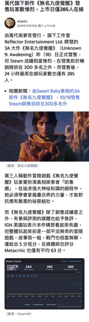 由萬代南夢宮發行, 旗下工作室 Reflector Entertainment Ltd. 開發的 3A 大作《無名 九使覺醒》(Unknown 9: Awakening)昨(18)日正式發售,但 Steam 成績相當慘烈,在 發售前於暢銷榜排在 300 多名之外,而發售後,24 小時最高在線玩家數也僅有 285 人。 第三人稱動作冒險遊戲《無名九使覺醒》玩家要扮演真相探索者「哈魯娜」,在追求強大神 祕知識的過程中,她必須學會掌握疊合界的力量,才能對抗懷有敵意的祕密結社。 而《無名九使覺醒》除了銷售成績差之外,有參與評測的媒體也給予負評,IGN 美國站表示 本作構想看起來有趣,但整體玩起來卻是一個平淡無奇的冒險遊戲,故事很一般,戰鬥也相 當無聊,僅給出 5 分低分,在媒體綜合評分 Metacritic 也僅有平均 63 分。 心得: 最近看到很多人在討論DEI、SJW的問題,對我來說其實沒有很在意,對大部分玩家來說應該 也不是很在意,主要還是遊戲內容玩法跟劇情要好。 例如10/10,遊戲內容是好玩的,劇情被大家詬病的其實也不是政治正確,而是刻意的部分 ,太刻意的加入政治正確,會讓劇情變得很怪。 其實大部分的遊戲、電影及影集多多少少都有政治正確的要素,但是大部分評論的點不是在 政治正確,而是劇情的安排,還有選角是否能配合上原作(例如白雪公主跟美人魚,為了政 治正確就跟原作脫離了)。 近期很多歐美的電影,為了推廣政治正確,讓劇情變得很空洞乏味。 而韓劇大部分的男女主角也都不一定是好看的,但是你劇情如果安排得好也不會有人針對政 治正確拿出來批評。 我覺得現在歐美的遊戲界為了政治正確,刻意的添加太多,導致內容變得很突兀,為了宣揚 政治正確理,遊戲內容反而不重視,才是近期歐美陷入的問題。 我想最重要的還是刻意的部分。 -- ※ 發信站: 批踢踢實業坊(www.ptt-site.org.tw), 來自: 42.72.241.184 (臺灣) ※ 文章網址: https://www.ptt-site.org.tw/Steam/M.1729308407.A.FAF