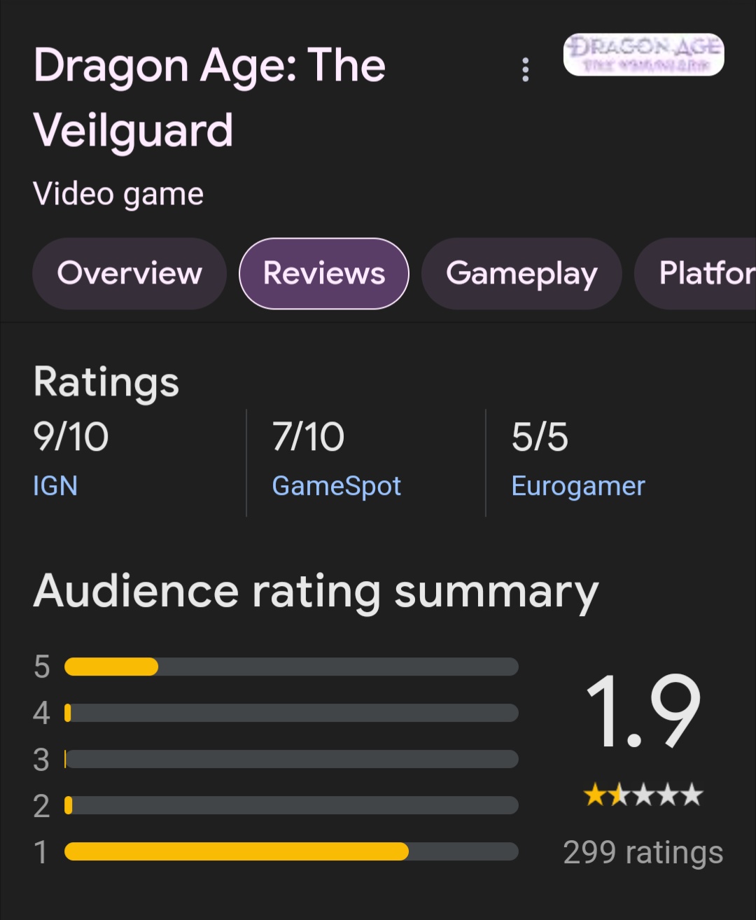 給 80 分的 Push Square 則認為《闇龍紀元:紗障守護者》並非 BioWare 回到巔峰之作
