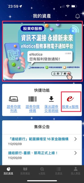 最近集保e存摺,在推eNotice 從App首頁點進去股東e服務 https://i.imgur.com/w7wyJMA.jpg