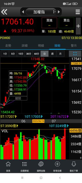 噓 xperiaxa : 今天這根爆大量的K線很重要 低點16994不能跌破 07/13 16:42