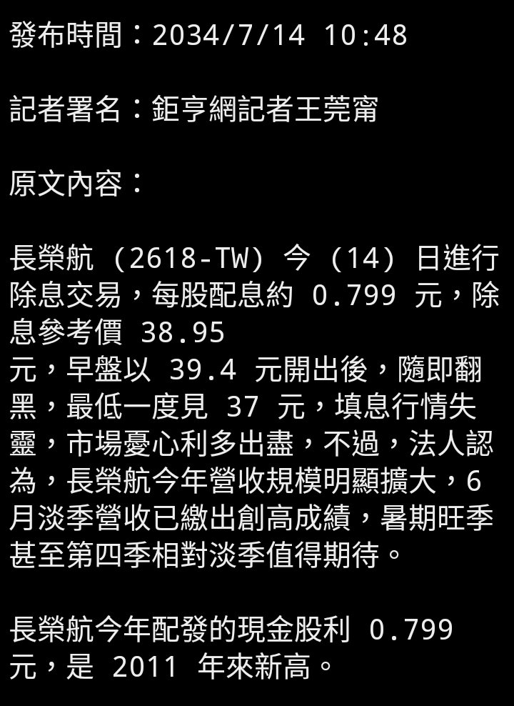 推 tomdavis : 剛好是長榮航 你可以比對一下券商給的期貨留倉數 07/16 22:07