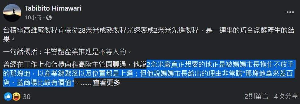推 Croy : 記者幫市府說是2奈米 市府是說先進製程 07/18 09:02