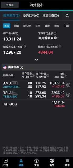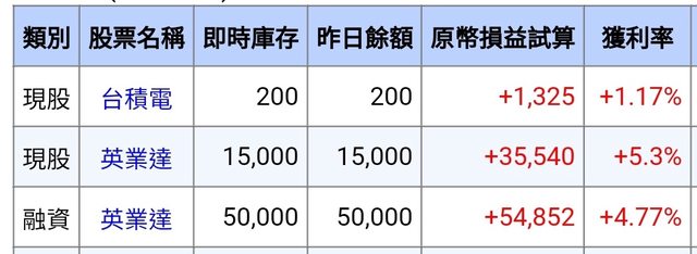 目前手上英業達獲利50%,前幾天第一次買美股買了88股AMD小小獲利