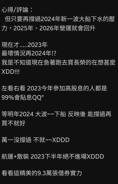 → rayisgreat : 昨天貨櫃沒啥跌 YU今天發文 明開盤先補跌5%再說08/03 10:57