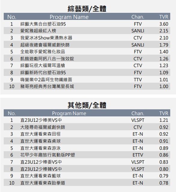→ jahnny: 其實看大熱門 年度收視王 一年比一年低 真的電視收看減少 08/09 21:13