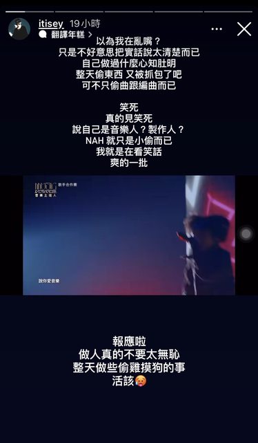 推 dan1984: 也難怪伊西火力全開…一個製作人的原創音樂節目爆出抄襲 10/02 02:17