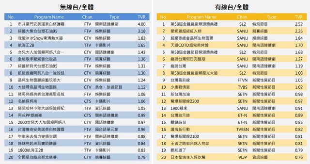 全能歌手 (民視) 1.38 (上週 1.17)