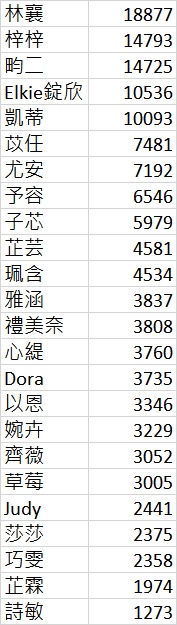 推 jjam: 其實可以直接頒給林襄人氣王了 凱蒂昀二有百萬象迷加持 12/30 14:24