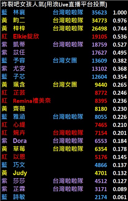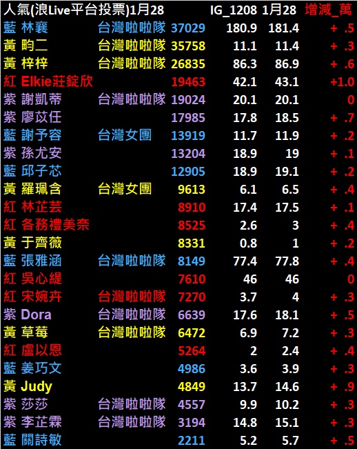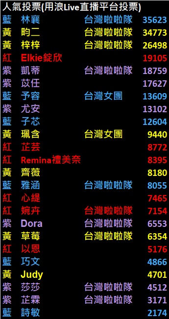 推 laihom0808: 莊錠欣的票變多,現場拉的,她在台沒粉絲嗎? 01/27 23:04