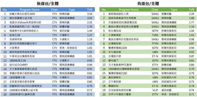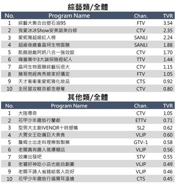 綜藝新時代 (民視) 0.79 (上週 0.77)