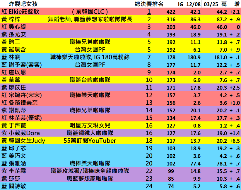 → chen5512: 要和原來粉絲數比較才有意義,例如林襄原來179.7增加1. 03/27 04:16
