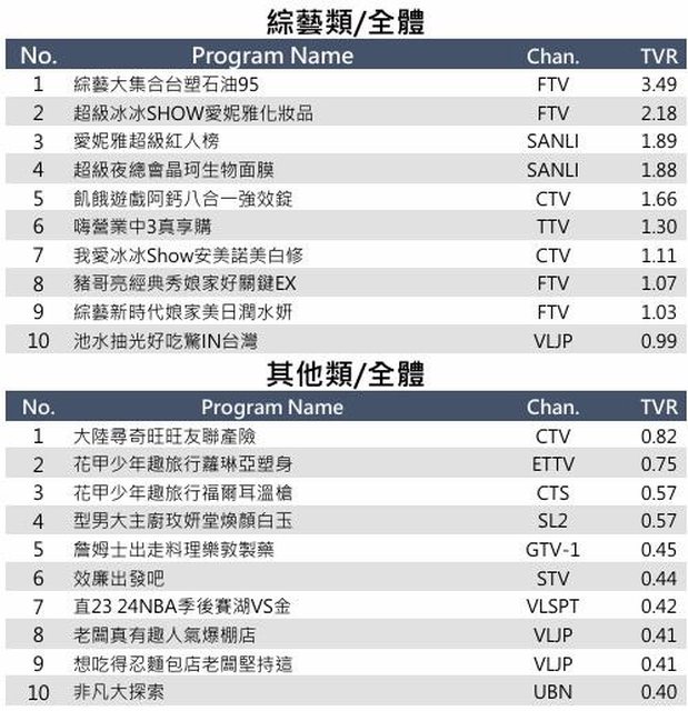 → silentknight: 老吳還是認為玩很大是收視第一的外景節目耶 04/25 18:19