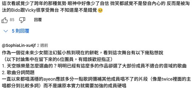 熱門留言:少了氣勢、少了自信、實力需要加強的成員Hold不住某些片段