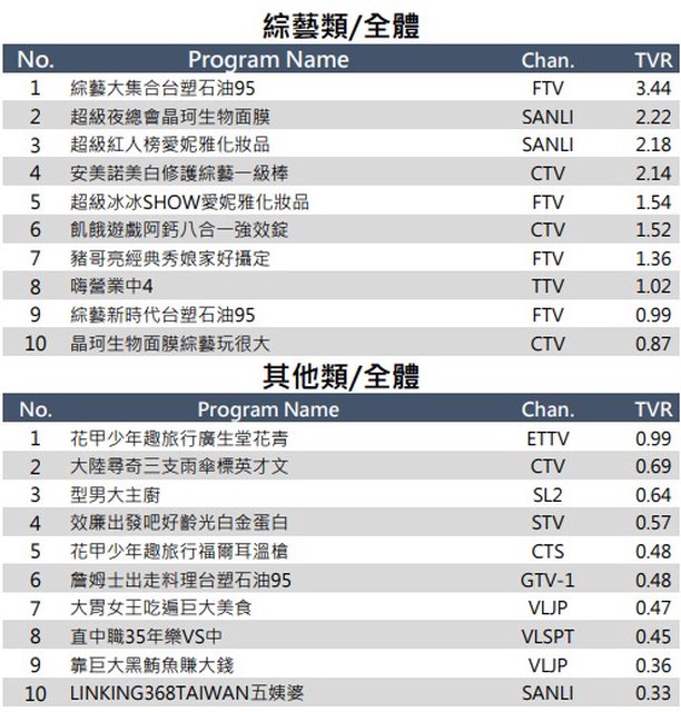 → JokerAwesome: 週六檔的節目都會互比 08/30 15:00