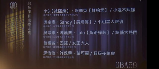 推 tinmar: 綜藝主持人入圍 三個是談話性節目 09/11 16:42