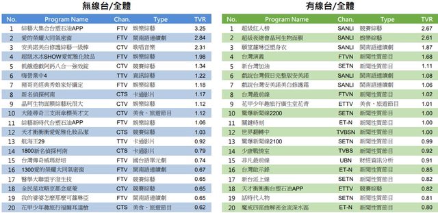 效廉出發吧 (東森超視) 0.55 (上週 0.51)