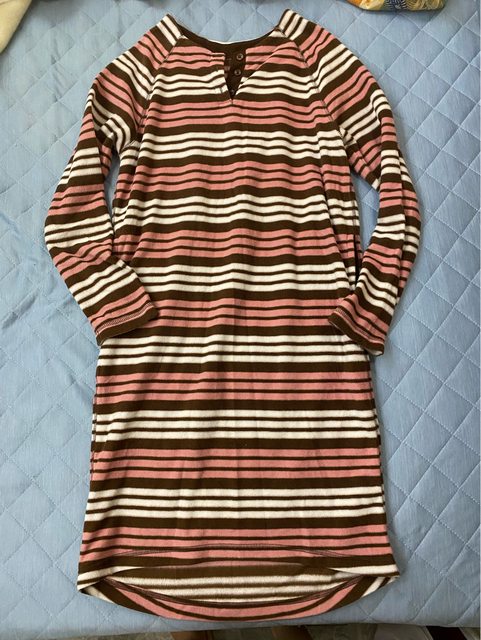 3、粉咖條紋珊瑚絨睡衣