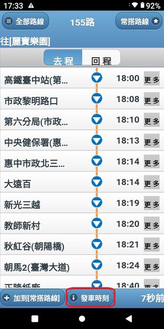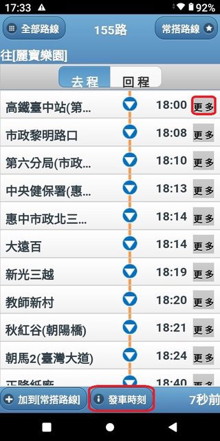 朝馬 6:03 麗寶 6:51 加減得知朝馬到麗寶,約48分鐘。 3.複雜版APP--台中公車何時來