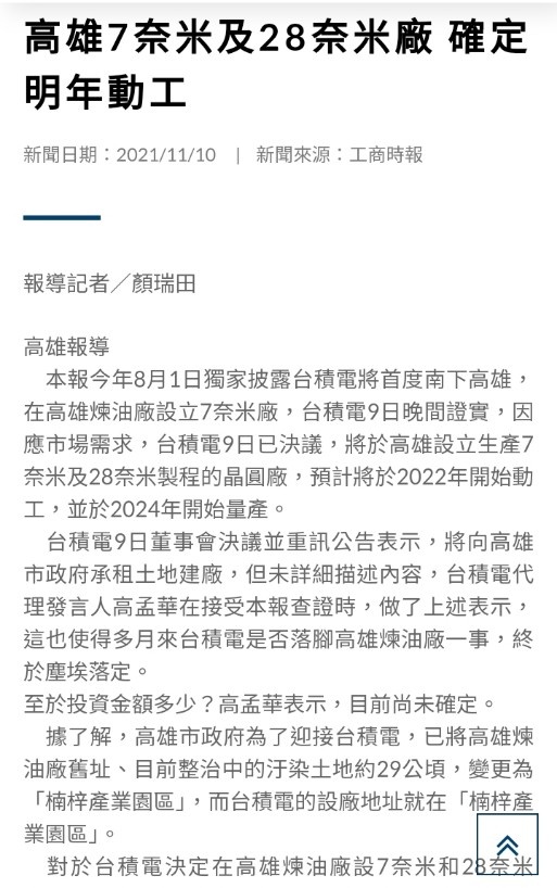 推 reason825 : 樓上說的是真的,台南高雄的台積電都是水電土地完全 08/10 21:26