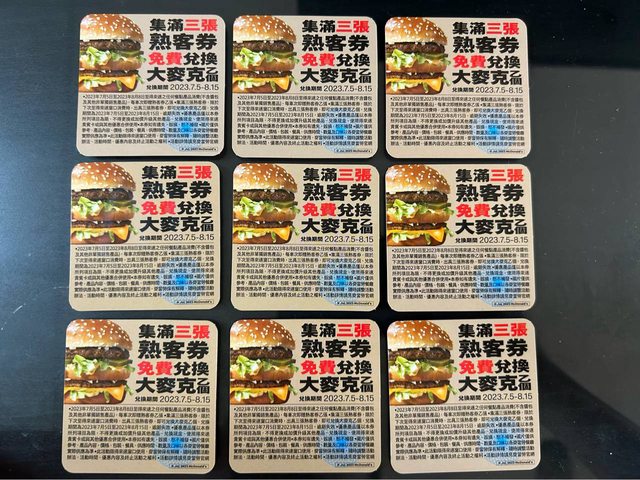 物品名稱:大麥克熟客券9張