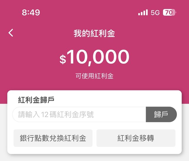轉帳後紅利金移轉歸戶。