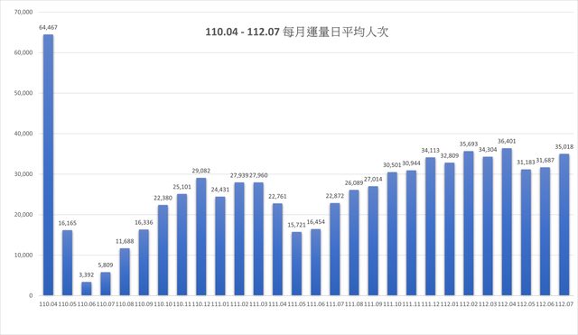 110年4月後每月運量日平均人次統計: