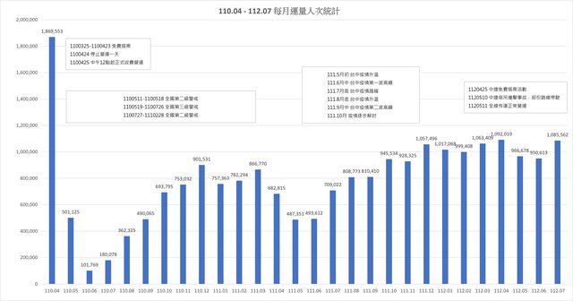 110年4月後每月運量人次統計: