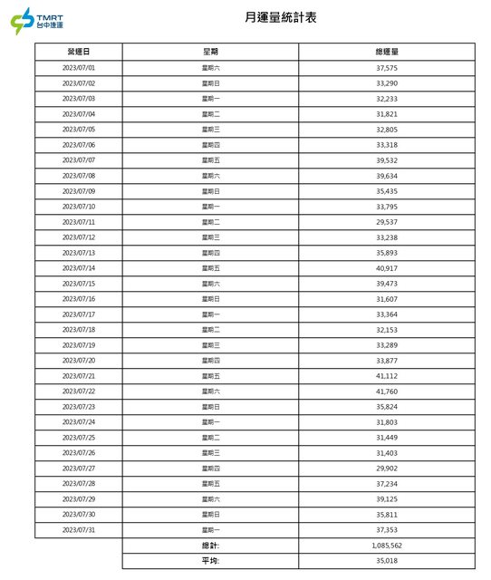 112年7月每日運量統計: