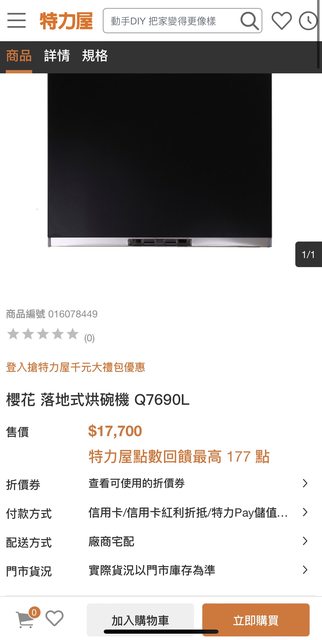 標題[交易] 全新櫻花 落地式烘碗機 Q7690L