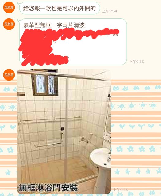 1.客服很即時,有關於浴室拉門的問題都能詳細回答,報價也很快