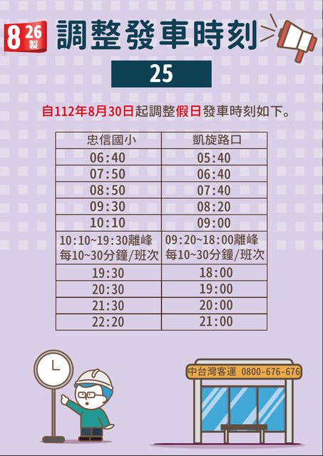 推 ccjqueen : 今天坐公車司機廣播,25-30才發一班車,假日一小時,哎 08/30 00:20
