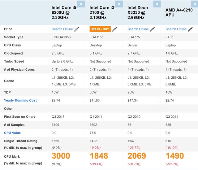 CPU跑分參考:
