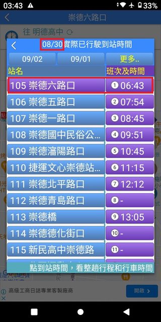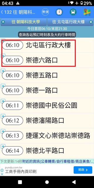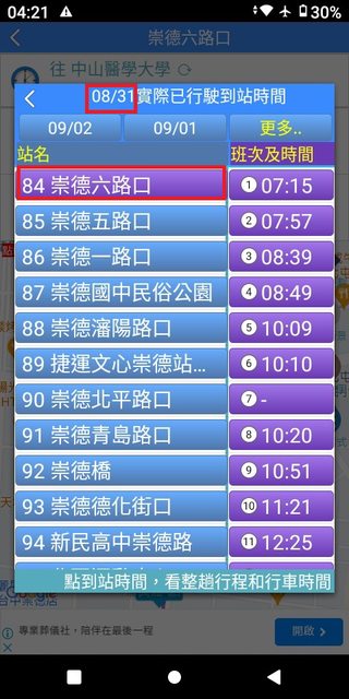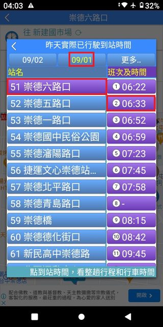 但在35~43分這之間,卻忽視錯過了發車點近在咫尺且6:40穩定發車的132號。