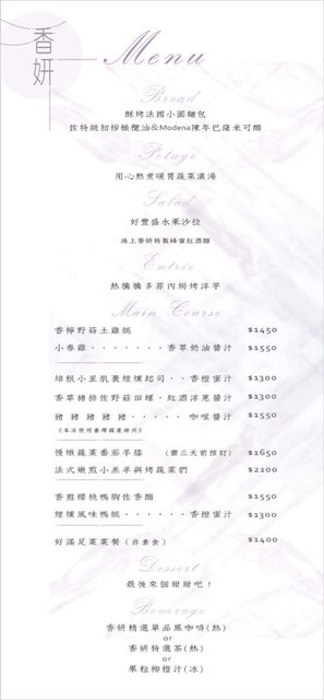 標題[贈送]9/2晚間法式餐廳香妍小館2位