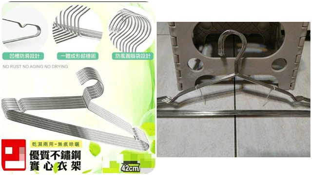 [商品] 全新 42cm 10入 不鏽鋼防鏽曬衣架