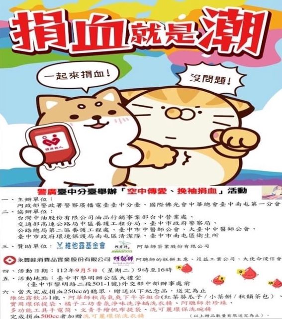 推 n10617 : AB型、A型、O型缺血中,請大家幫補充血庫 09/04 00:11