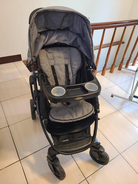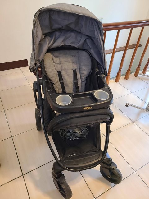 3.二手Graco美國帶回推車$850 從美國搬回時帶回 GRACO美規 很穩很好推,可單手收放 整體大約七成新 很堅固,有大人杯架×2跟小孩托盤(有2杯架)