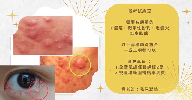 標題[徵求] 西區/閉鎖性粉刺、毛囊炎、皮脂球模特兒