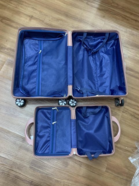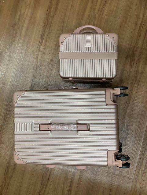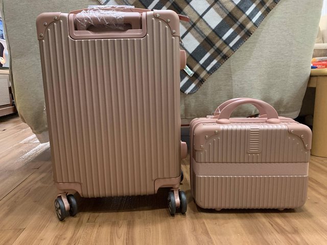 全新未用 僅拆開拍照 非常美的玫瑰金 手提箱和行李箱的角都有鋁合金防碰撞 輪子360度旋轉 適合女生或小孩在輕旅行使用 兩者合售不分售 意者請站內信 謝謝 --