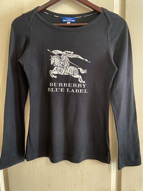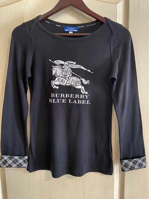 38號 肩36 胸44 長59(公分) 穿過2~3次 毛40% 水鑽完整 原本就是不規則排列 3.Burberry blue label 黑色戰馬圖騰上衣 1880含全家運費