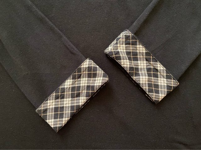38號 肩38 長83公分 全新附吊牌 購於新光三越 領子為疊領設計 袖口及領子拼接異材質羅紋 簡單卻又能顯現個人品味 版型非常顯瘦 每顆鈕釦內部都有做小加強釦 袖口有縮口袖 防止風進入 品質非常好 9.Kinloch anderson 上衣 & Scottish house 格紋短褲 1980含全家運費