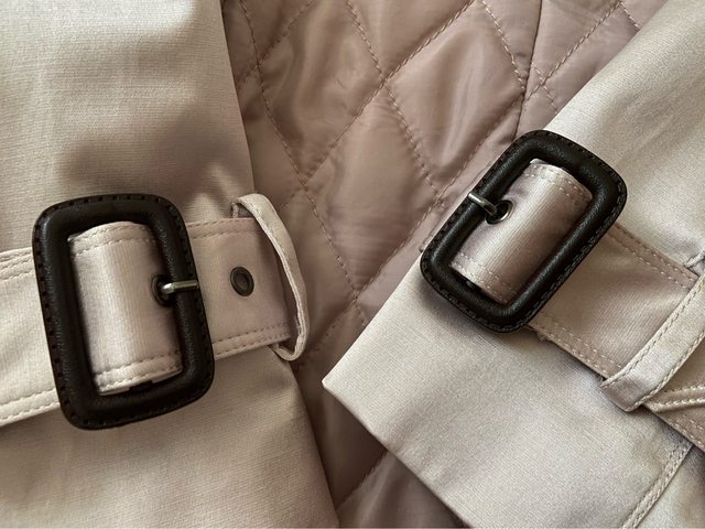 36號 肩36 胸44.5 長72(公分) 穿著少於10次 很新 已送乾洗 毛90% 毛領是兔毛 很柔軟 有別於一般市面 毛領可拆 袖子可反摺 每顆釦子都有加強釦固定 內裡是經典格紋 5.Burberry 玫瑰粉中長風衣 7998含店到店運費(可全家 萊爾富 OK 取貨)