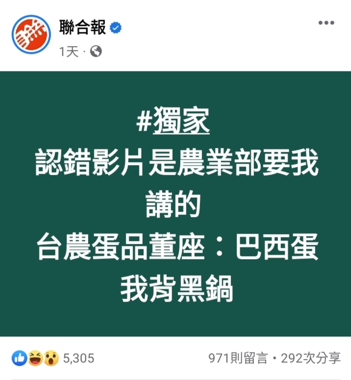推 apple6 : 民進黨農業部欺騙巴西蛋,夥同民間公司造假認錯影 09/15 12:27