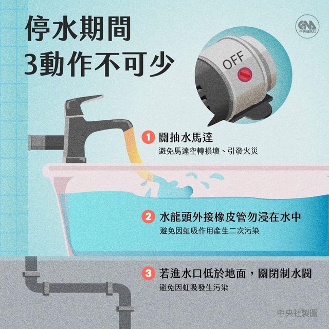 剛恢復供水時,請將全部水閥打開排氣,以利迅速恢復供水。恢復供水後,自來水管線末端