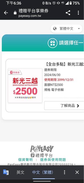 標題[交易] 新光三越電子禮卷4500